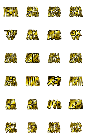 金文字の動く版第3弾です,おはようからおやすみ,了解,おつかれさま,誕生日祝など毎日使える言葉を豪華でリアルなゴールドでド派手に伝えます