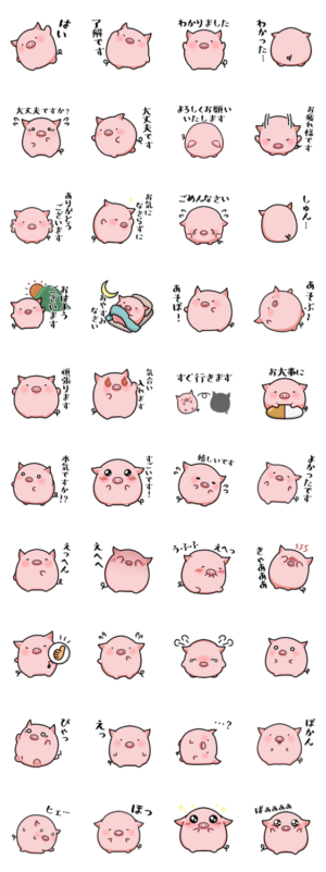 丸くて可愛い豚のスタンプ。こぶたのアトリエ より発売