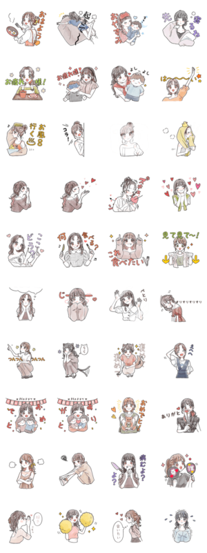 大切な人、カップル間、彼氏くん、旦那さん、親友ちゃん、仲良しの子に是非送ってほしいオシャレな女の子スタンプです。挨拶多め、日常で使えるセリフばかり♪