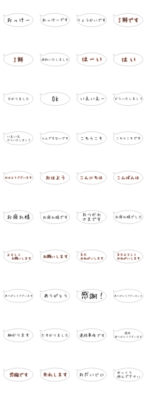 仕事でめっちゃ使える/敬語/丁寧語/シンプル/吹き出し/吹出し/フレーム/承知いたしました/了解です/ありがとうございます/よろしくお願いします/お大事に/手書きフォント