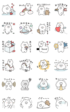 飛び出す!!ガーリーくまさん スタンプに書いてある文字一覧