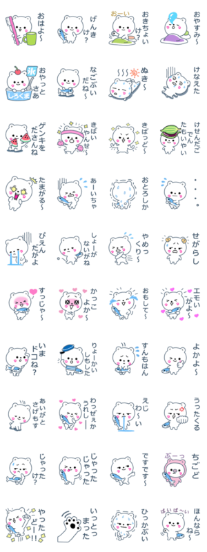 可愛い白くまの鹿児島弁の日常会話のスタンプです。よろしくね。EBISEN より発売