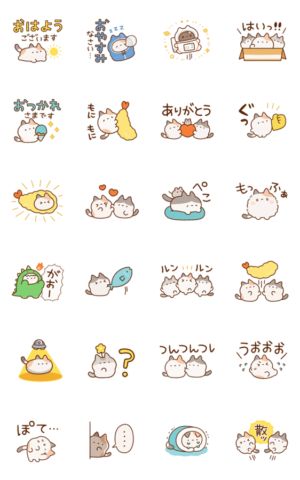 もちもちにデフォルメされたねこのスタンプです。にぎやかに動くスタンプをラインに飾ってトークを盛り上げましょう。