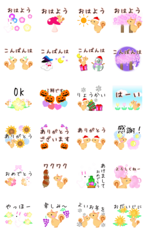 季節ごとに使える♥夏/秋/冬/春/毎日使える/かわいい/了解/ありがとう/感謝/よろしく/おしゃれ/挨拶/お大事に/りす/リス/うさぎ/ウサギ/クリスマス/あけましておめでとう