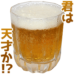 とにかく相手を褒めまくるビールのスタンプです。褒め言葉は言う方も言われる方も良い気分になれる最強の言葉!酒、飲みテロ、飲み会。ビアー。実写飲み物スタンプシリーズ竹野チコ より発売