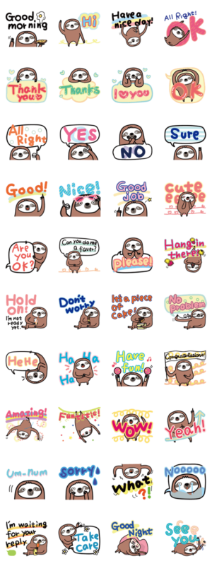 大きめ文字で読みやすいナマケモノの英語スタンプです。