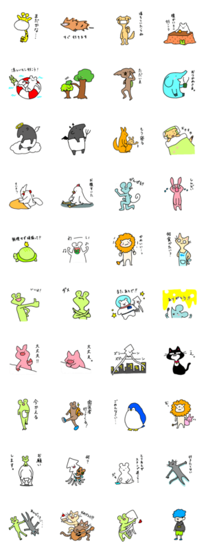 ゆるい動物たちのスタンプです。気軽に使っていただけると嬉しいです。