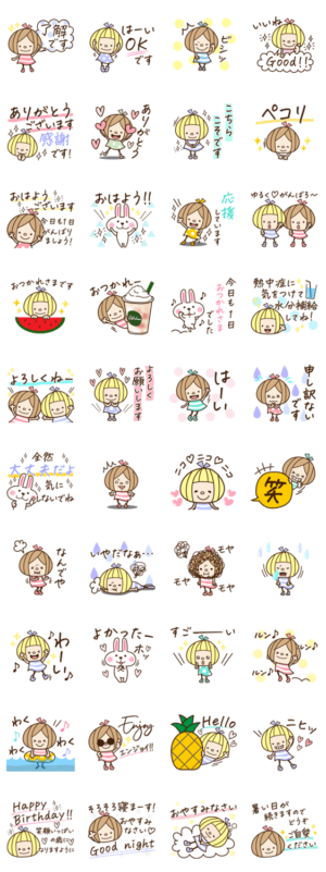 おしゃかわgirlsの大人の手書きフォントのスタンプ♡うさぎのうさこや長文もあります♪
