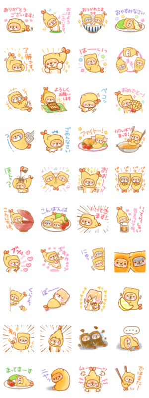 エビフライをかぶっているワンコがとても可愛いです。1番好きなスタンプです。