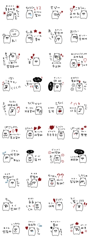 男女問わず使える便利な韓国語のシンプルスタンプ。韓国語読み方付き、日本語付きで誰でも使いやすい☆**mame mametaro より発売