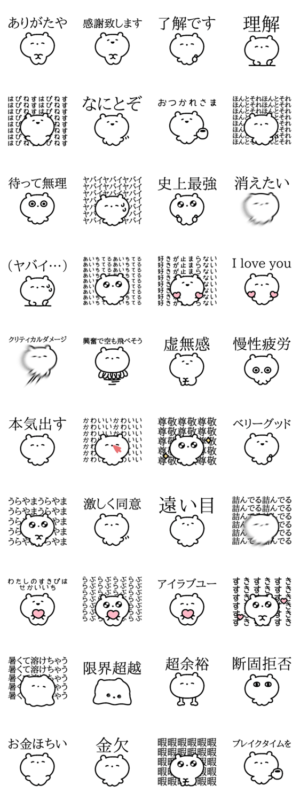 ゆるいくまのスタンプ。何かと使えます。 熊/クマ/アニマル/あにまる/どうぶつ/動物/ゆるめ/シュール/えもい/かわいい/可愛い/ラブリー/すきぴ/好き/愛情表現/うるうる目bearbear より発売