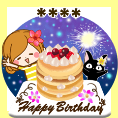 敬語も入った日常に便利な大人かわいい夏スタンプ、カスタムバージョンです♪やさしい黒猫ちゃんも一緒♪少しでも癒されますように。 「ほのぼのカノジョ」シリーズ