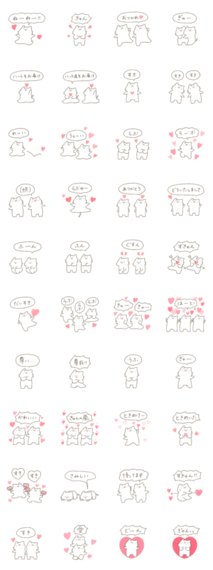 小さい白ねこ達がわちゃわちゃラブラブしてるスタンプです。恋人、友達、推しに使える愛の言葉を多めに入れました。猫/可愛い/ゆるい猫原のし より発売