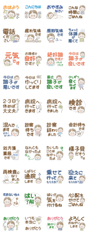シニアさんの体調報告というスタンプ。親子でするといいですね!