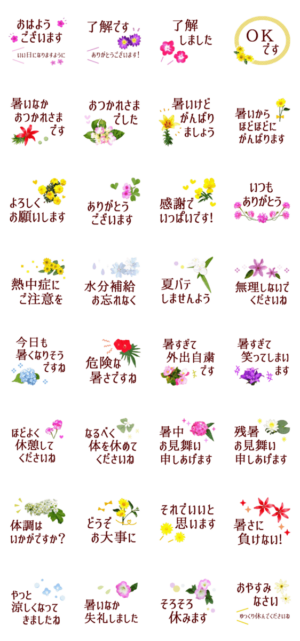 暑い日に便利な夏の敬語★植物で涼やかに スタンプ画像一覧