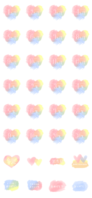 赤ちゃんの月齢、誕生日、カップル、恋人、夫婦、記念日、結婚を祝うおめでとうスタンプ