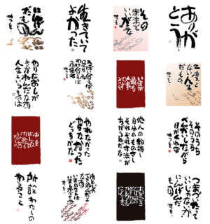 含蓄のある言葉が胸にささる。芸術的な文字が感動を呼ぶ。大人のスタンプです。
