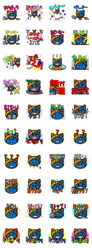 猫の着ぐるみを被ったウナギ「うにゃ太郎」 スタンプ画像一覧