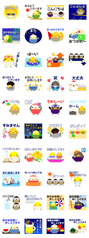 小鳥大好きな人のことり大集合(夏編) 2.1 スタンプ画像一覧