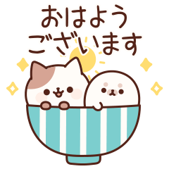 ブチ猫とゴマフアザラシの赤ちゃんの可愛いスタンプです♪DECOR より発売