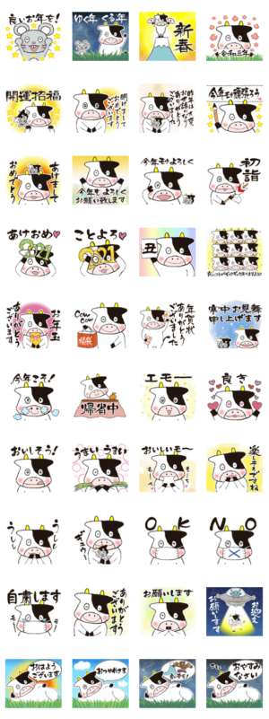 2021 干支 うしさんの年末年始(再販) スタンプ画像一覧