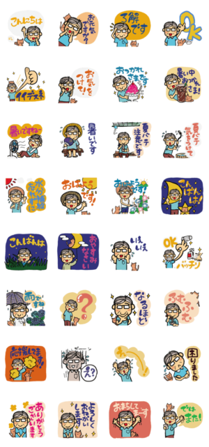 ごきげんじいちゃん夏 with ねこ スタンプ大きく見やすくしました。暑い夏にぜひ使ってください。