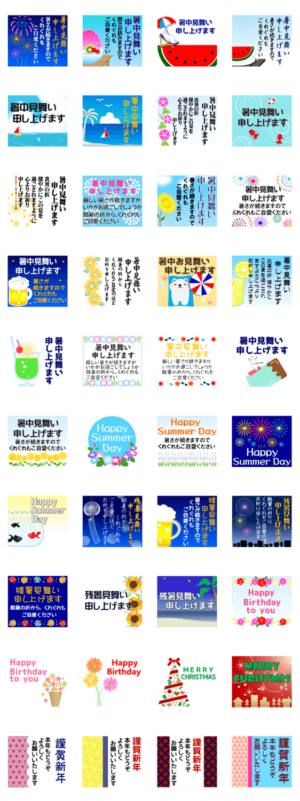 暑中お見舞い申し上げます、残暑、夏のあいさつなど プラス 年賀の挨拶、クリスマスカード、バースディーカードなど盛だくさん