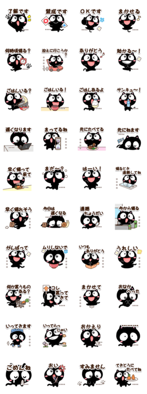 『家族連絡✨くろちー』スタンプのカスタム版です。自分の名前や相手の名前、好きな言葉を何度でも入力できるネコスタンプ。ねこ好きの方にぜひ。【かたこ】