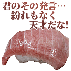相手を褒めまくるお寿司のスタンプです。褒め言葉は言う方も言われる方も幸せになる最強の言葉!返信に便利。おすし、オスシ。魚類、SUSHI、飯テロ、写真。実写面白い食べ物竹野チコ より発売