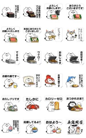 小判、お金、お肉、カニ、猫ちゃん…定番からシュールな物まであらゆるワイロを贈る猫。ありがとう、よろしく、お疲れ様など日常の挨拶を自由にかえられる便利なスタンプ! 現在この商品は一部のスマートフォン版LINE 10.3.0以上のトークルームでのみ使用できます。動作環境の最新情報はヘルプをご確認ください。ユウコ より発売
