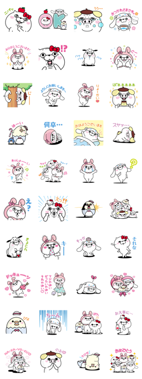 ヨッシーさんとサンリオキャラクターのコラボスタンプです。非常にインパクトのある個性的なスタンプをラインに飾りましょう!