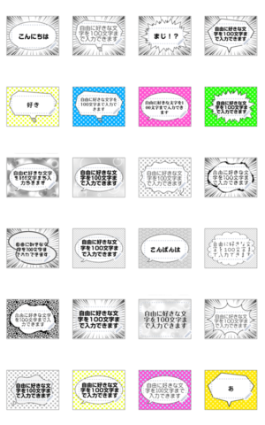 漫画吹き出しスタンプ(テキスト入替可能)のダウンロードはこちら↓