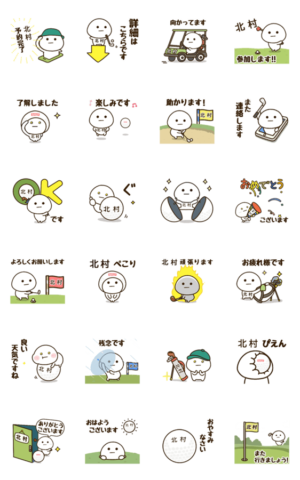 ラウンド前後の連絡を敬語で伝えるゴルフの名前スタンプ!会社,上司,友人などの挨拶,報連相にも最適☆byだいふくまる。「北村,きたむら」