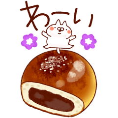 ねことうさぎの名前スタンプシリーズ。パンがいっぱいスタンプです。ジャムやコーヒーもあり。とびだす/猫/デカ文字/大人/可愛い/敬語/丁寧/基本/無難な言葉。山田まぽん作