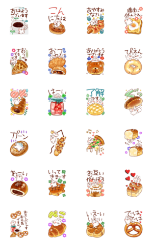 とびだす♡パン屋さん【ねことうさぎ】 スタンプに書いてある文字一覧