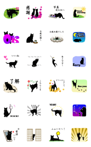 毎日使えるシンプルでクールな黒猫のアニメスタンプ第2弾です!家族・友達・大人・誰でも日常生活で使いやすいです♪挨拶ときどき英語。YUI.A より発売