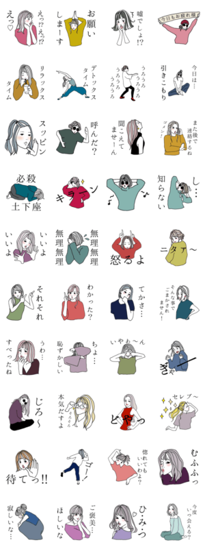 可愛くておしゃれな女の子達のスタンプです。女子高生、女子大生、社会人、主婦の方でも使いやすい日常会話。シュールな表情も◎人気の『女性達』シリーズの第5弾です