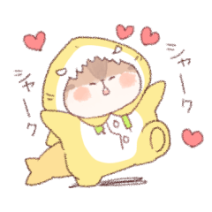 サメの着ぐるみを着た、リスのスタンプです。かまってほしい時などにオススメです!駄菓子屋 より発売