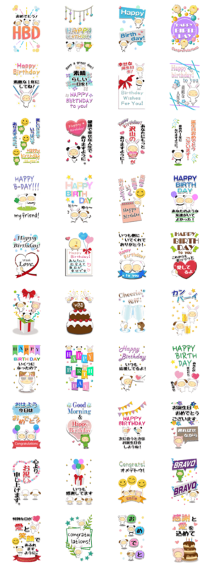 きぐるきっずのお祝いBIGスタンプ♪~HBD・おめでとう詰合せ~友達・家族・恋人の誕生日にかわいいお祝いメッセージを♪♪