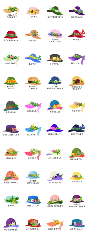 花飾りの帽子をかぶっているような、華やかな気持ちになれる、お洒落なスタンプです。タッジー工房 より発売