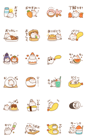 わがままボディな可愛い『ずんどうネコ』のアニメーションスタンプ第9弾♪今回はたべものと一緒!とっと より発売