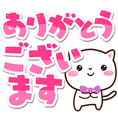 『シロネコすたんぷ』から選びやすく使いやすい【デカ文字】編です。よく使う言葉や、あいさつ等、便利な白猫スタンプです。ねこ好きな方にぜひ。【かたこ】