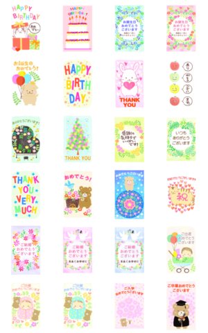おめでとうや感謝を伝えるグリーティングカードのようなBIGスタンプです。ありがとう/結婚祝い/出産祝い/誕生日/入学祝い/卒業祝い