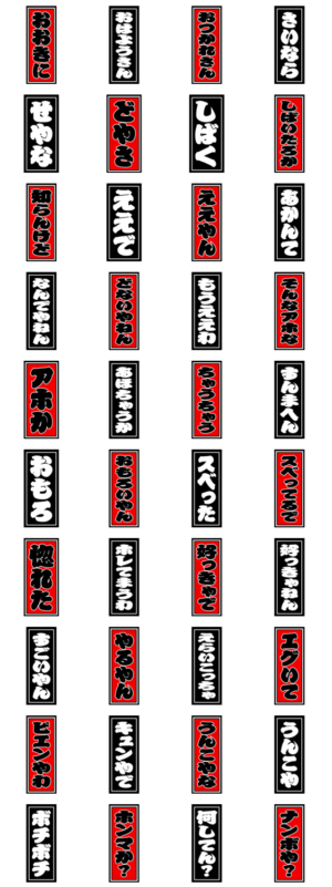 千社札風ビッグスタンプの関西弁バージョン。相撲の番付などにも使用されているフォントは大きくて見やすく、インパクト満点!