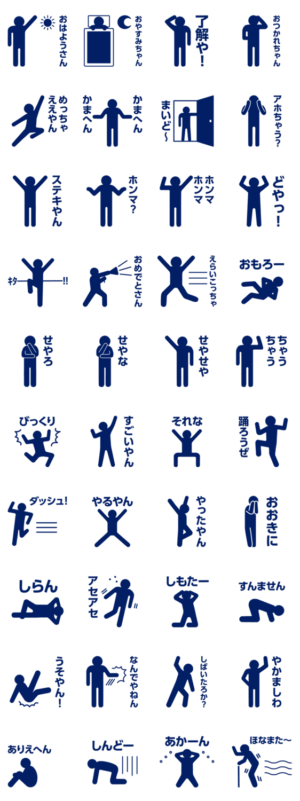 ピクトグラム/エセ関西弁/大阪弁/京都弁/和歌山弁/近畿方言/西日本方言/兵庫弁/奈良弁/スポーツ/つっこみ/漫才/ワード/日常会話/毎日使える/案内/標識/4A-Studio(よんえーすたじお) より発売