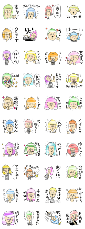 ユルい絵柄でポップ、ファンシーチックだけど、目が怖い女の子。沖縄方言MIX。ボーダーの髪の毛が特徴。キモかわ。同じ意味でも色んな言い回し有り。