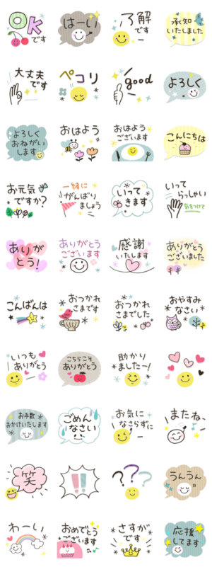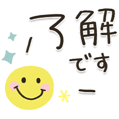 見やすい文字と定番のスマイルでずっと使えるスタンプです。
