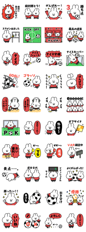 サッカーうさぎ【赤色&黒色のチーム】 スタンプ画像一覧
