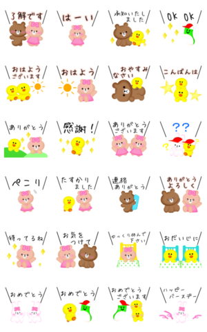 毎日使える挨拶スタンプ♥ライン公式キャラmamama-chinver.LINEブラウンフレンズ/チョコ/コニー/サリー/吹き出し/承知いたしました/了解です/ありがとう/よろしく/お大事に