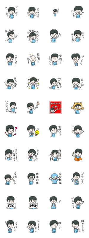 男性の介護士や保育士、幼稚園の先生が使えるスタンプです。とろん より発売